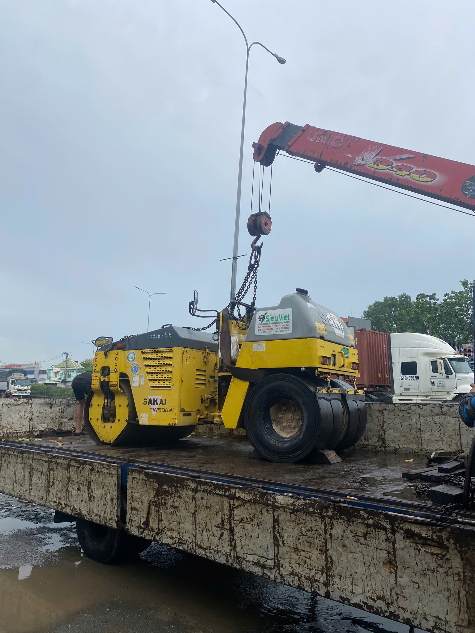 Xe cẩu 5 tấn cấu xe lu Sakai TW500 3.3 Tấn.