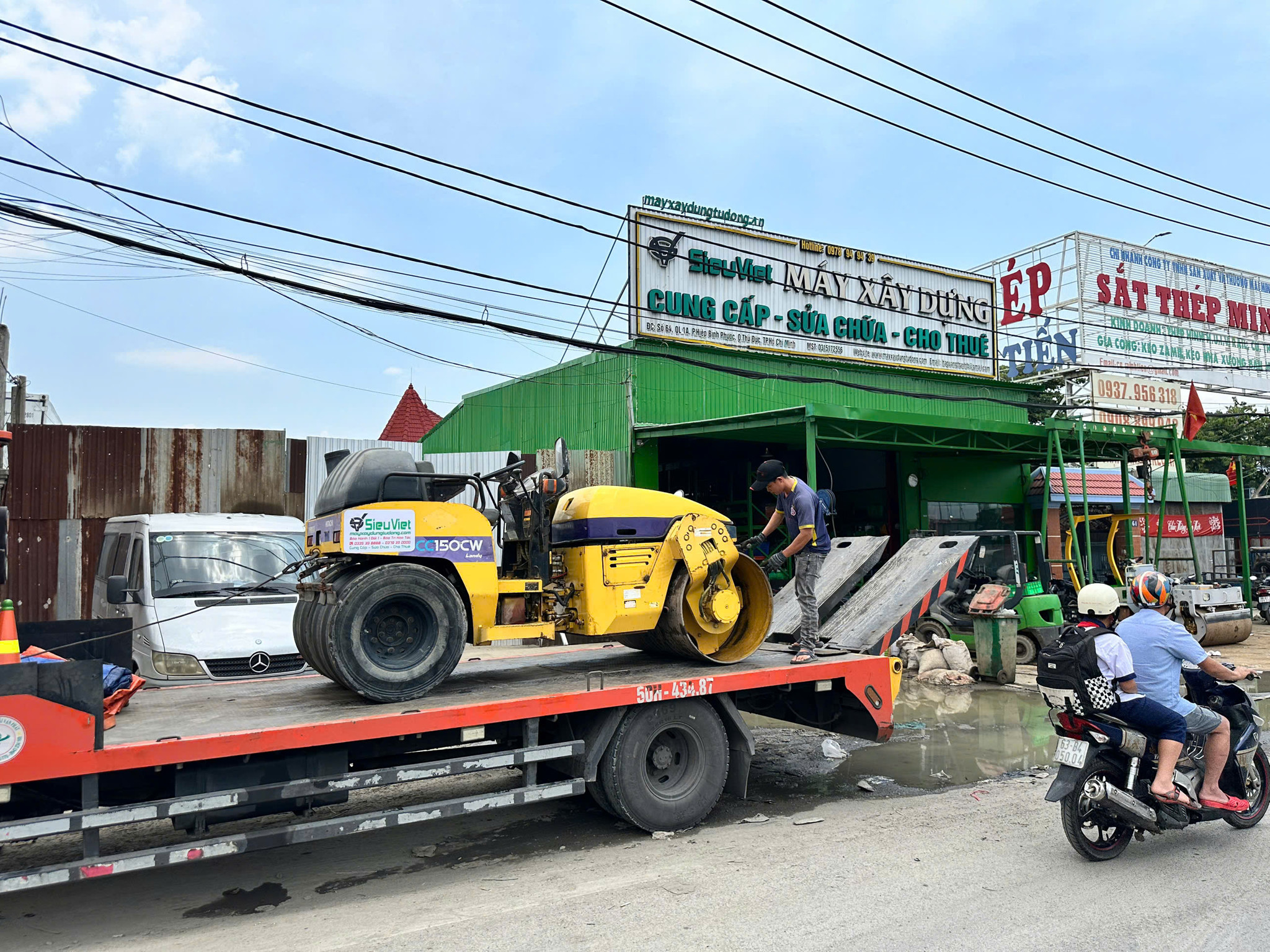 Xe kéo 5 tấn kéo xe lu Hitachi CC150CW nặng 3.6 tấn